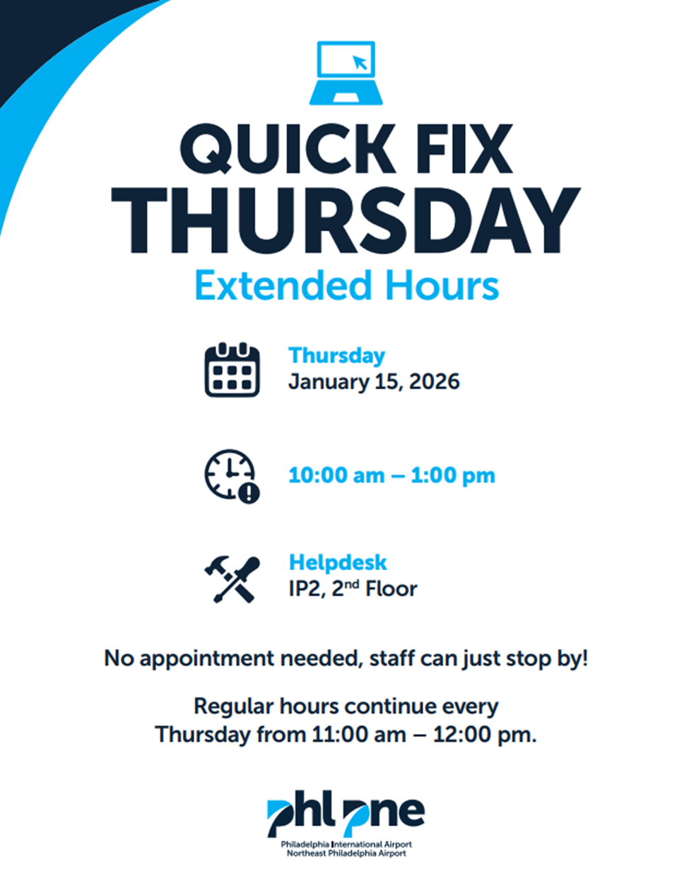 PHL's TSA team has consolidated Security Checkpoint locations, effective today. Terminal A-West and Terminal C are temporarily closed, and hours remain the same at all other terminals. For more, visit PHL Security Checkpoint Hours.