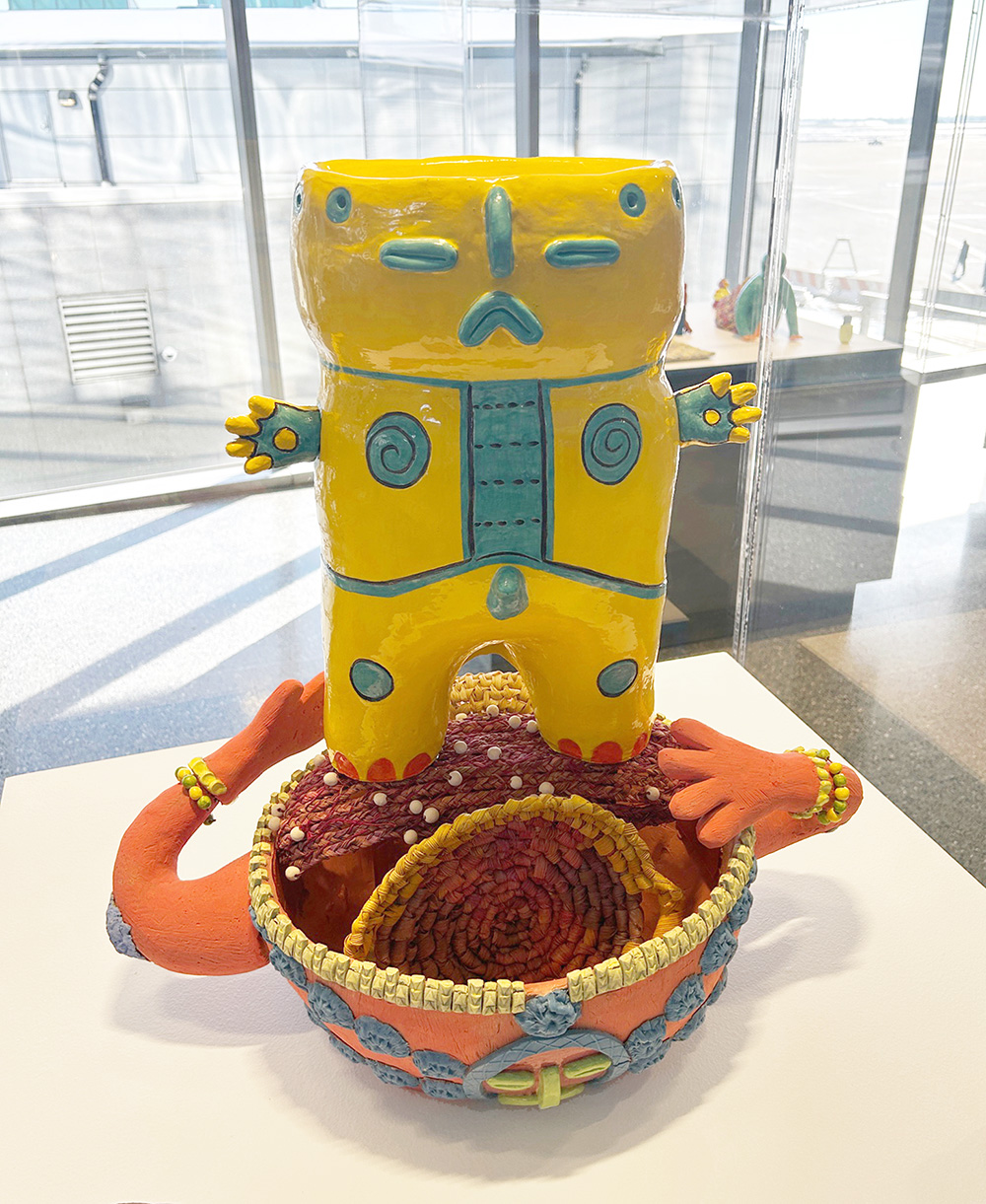 Carolina Marín Hernández is a Philadelphia-based artist, educator, and community organizer. Born in Cali, Colombia and raised in Queens, New York, Carolina celebrates her multicultural roots through sculpture, weaving, and performance-based work. She uses decorative ceramics, vibrant colors, and woven corn husks to construct large-scale artworks imbued with animism, humor, and memories.