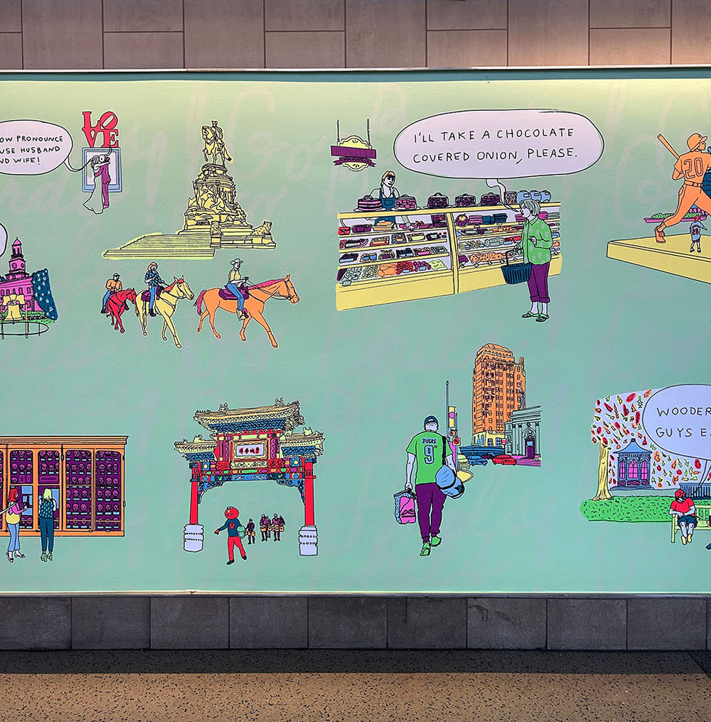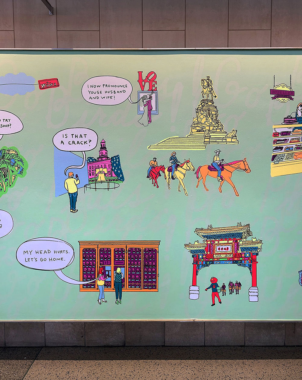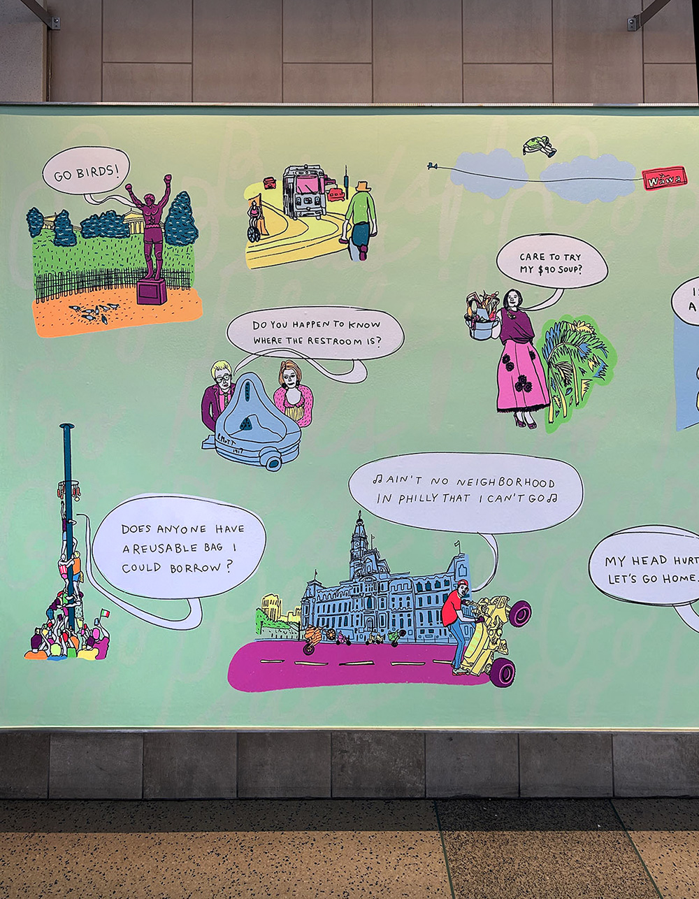 Named the “birthplace of America”, Philadelphia is one of the country’s first cities and is home to many significant firsts that shaped America’s early government. Two of the country's most important documents – the Declaration of Independence and the Constitution – were written and signed here. In contemporary times, Philly also boasts a thriving food scene, a passionate sports fan base, and is a leader in arts and culture, with more public sculptures and murals than any other city in the nation. Turbitt says, “This project is really about Philly’s identity: messy, imperfect and for everyone. People here LOVE this city… I’m here because Philly is one of the few affordable cities where artists can actually live and work. My comics embrace the grit and humor that makes this place JAWN!”