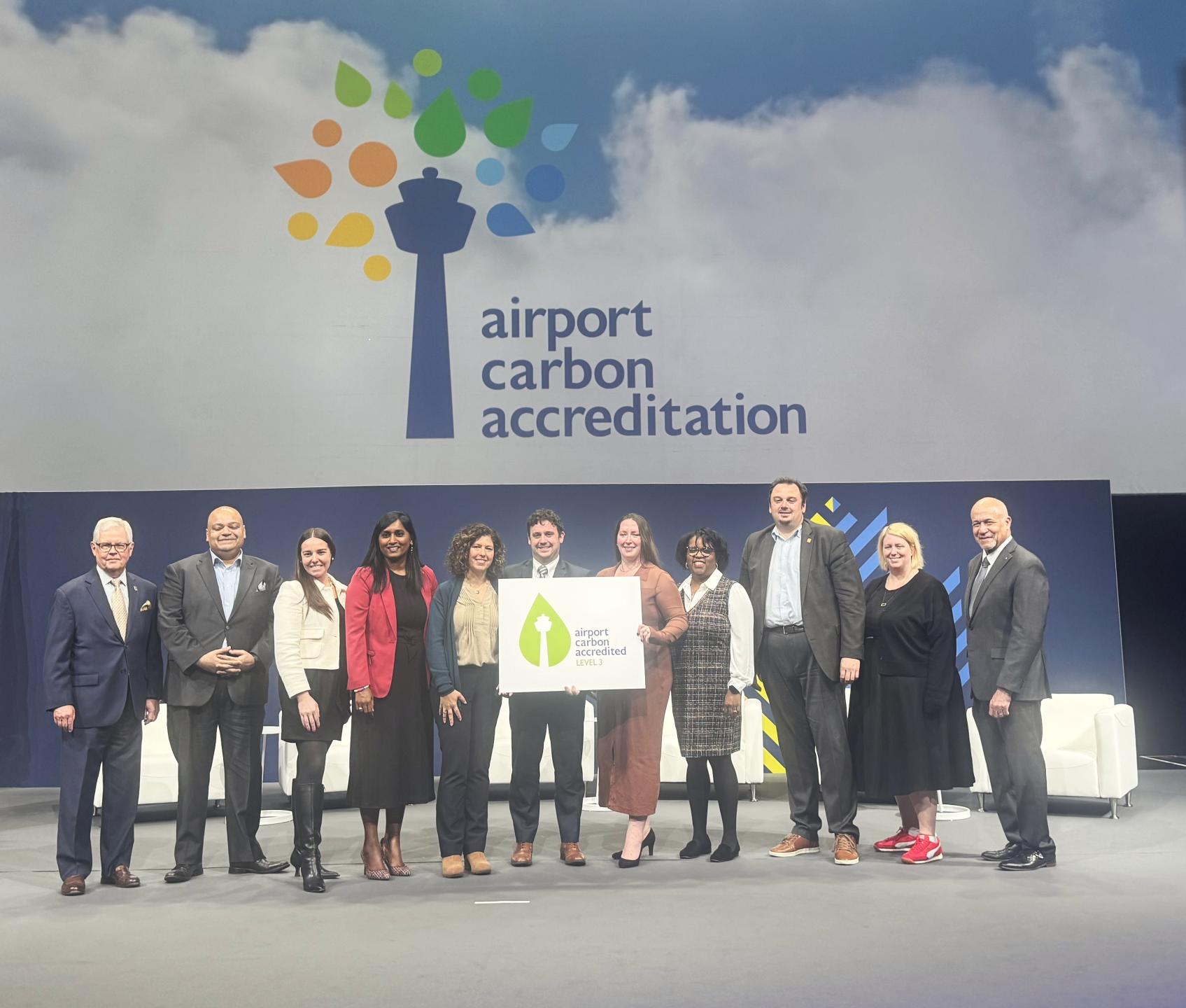 PNE was recognized for its Level 3 ACA achievement at ACI-NA and ACI World General Assembly in Toronto on October 29. Department of Aviation CEO Atif Saeed, Chief Development Officer Api Appulingam and Sustainability Manager Jessica Noon were among the airport team on hand to accept the honor.